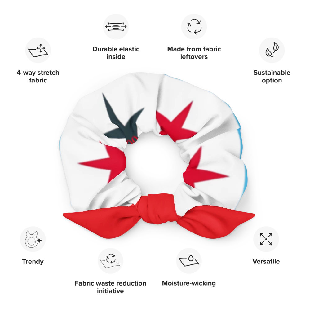 Keep your hair in check with this scrunchie! The trendy, stylish scrunchie will add the final touch to your outfit. Get yours now! • 91% recycled polyester, 9% spandex • Four-way stretch microfiber fabric • Breathable and fast-drying material • Smooth and stretchy fabric outside, elastic inside • Made of leftover materials from the manufacturing of other products • Fabric weight: 5.13 oz. /yd. ² (174 g/m²) • One size • Removable bow detail • Blank product components sourced from China
